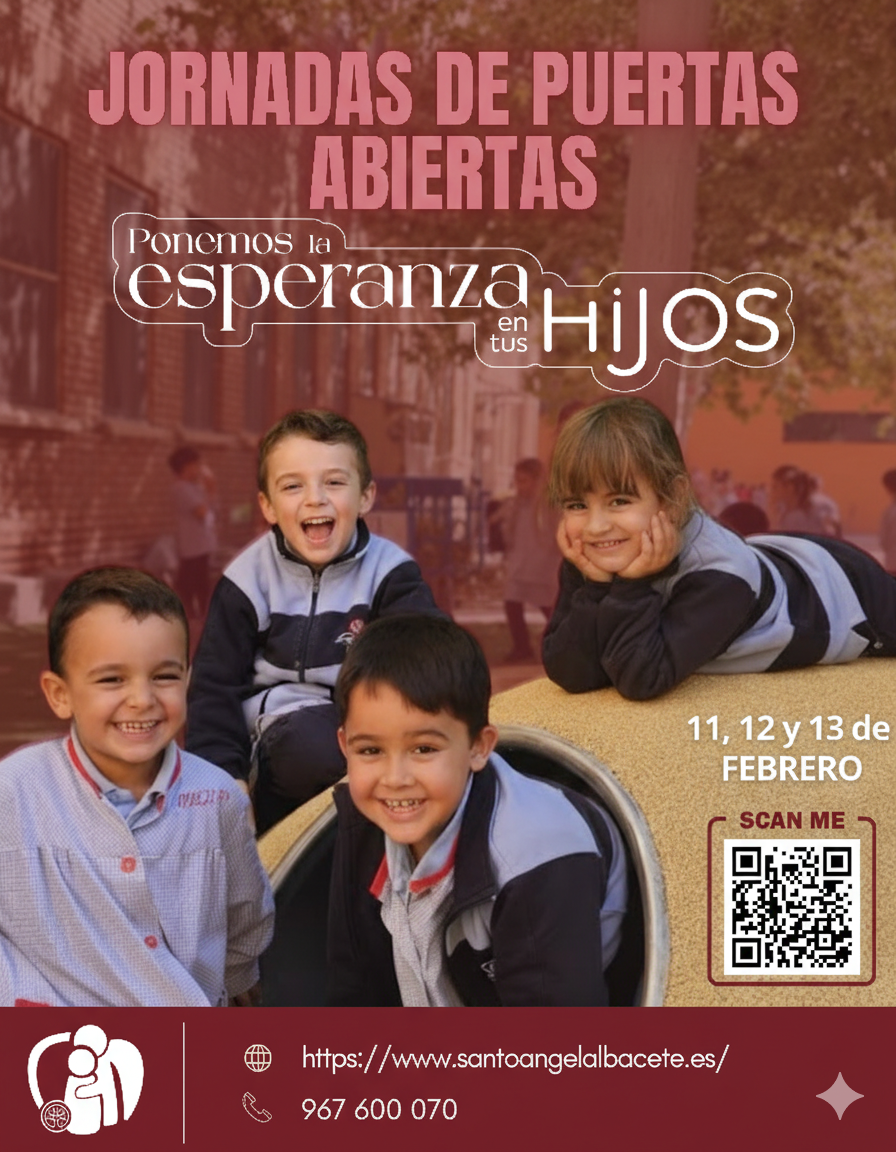 En el Colegio Santo Ángel de la Guarda de Albacete, creemos que elegir colegio no es solo buscar un aula; es elegir el entorno donde tus hijos construirán sus mejores recuerdos y descubrirán quiénes quieren ser. Por eso, nos hace especial ilusión invitaros a nuestras próximas Jornadas de Puertas Abiertas.